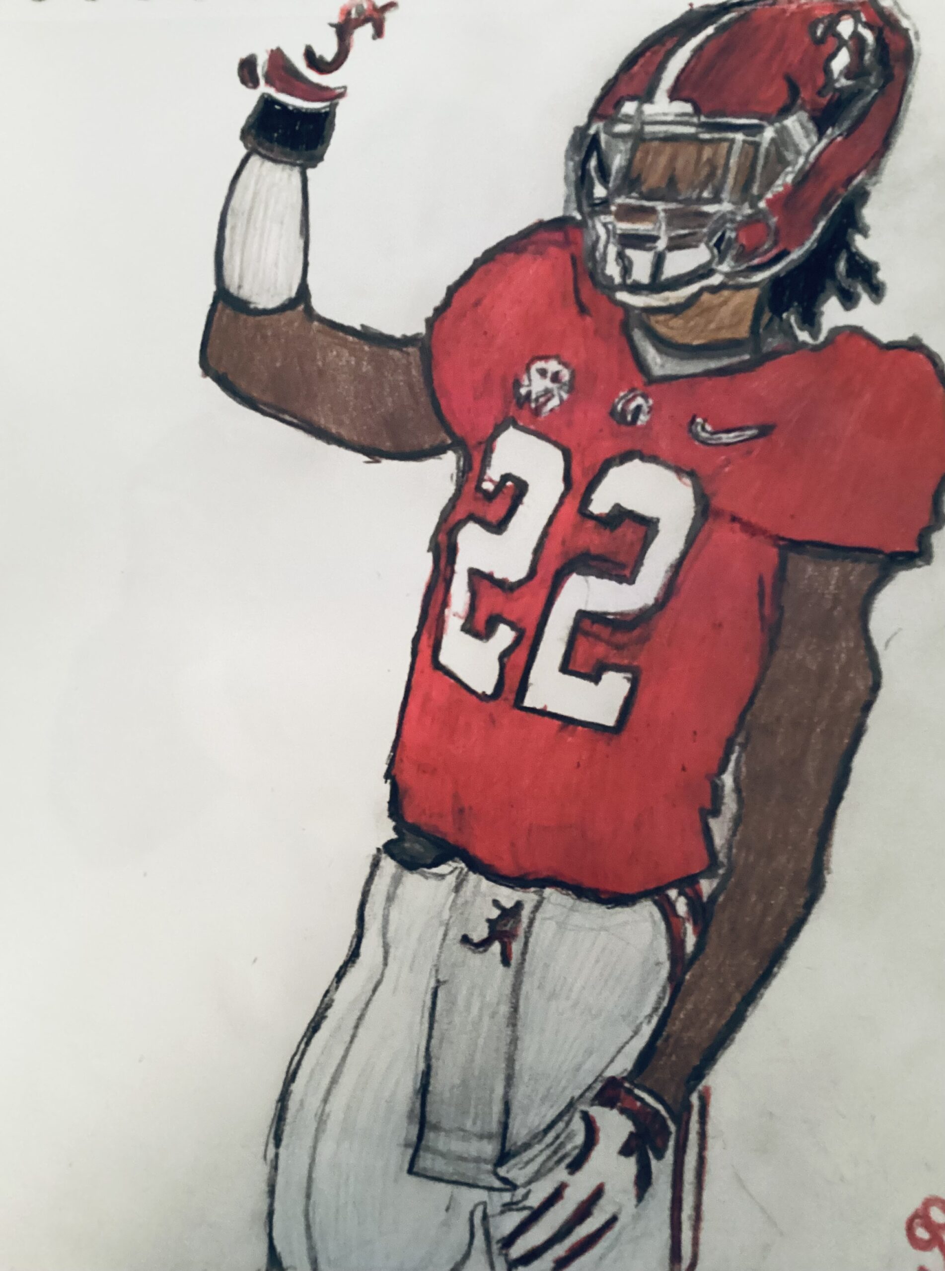 This is a original 9 by 12 colored pencil of Alabama running back Najee Harris done from gg