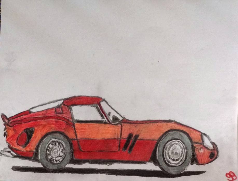 This is an original 8 by 11 colored pencil olden 80’s autumn mustang car done from gg