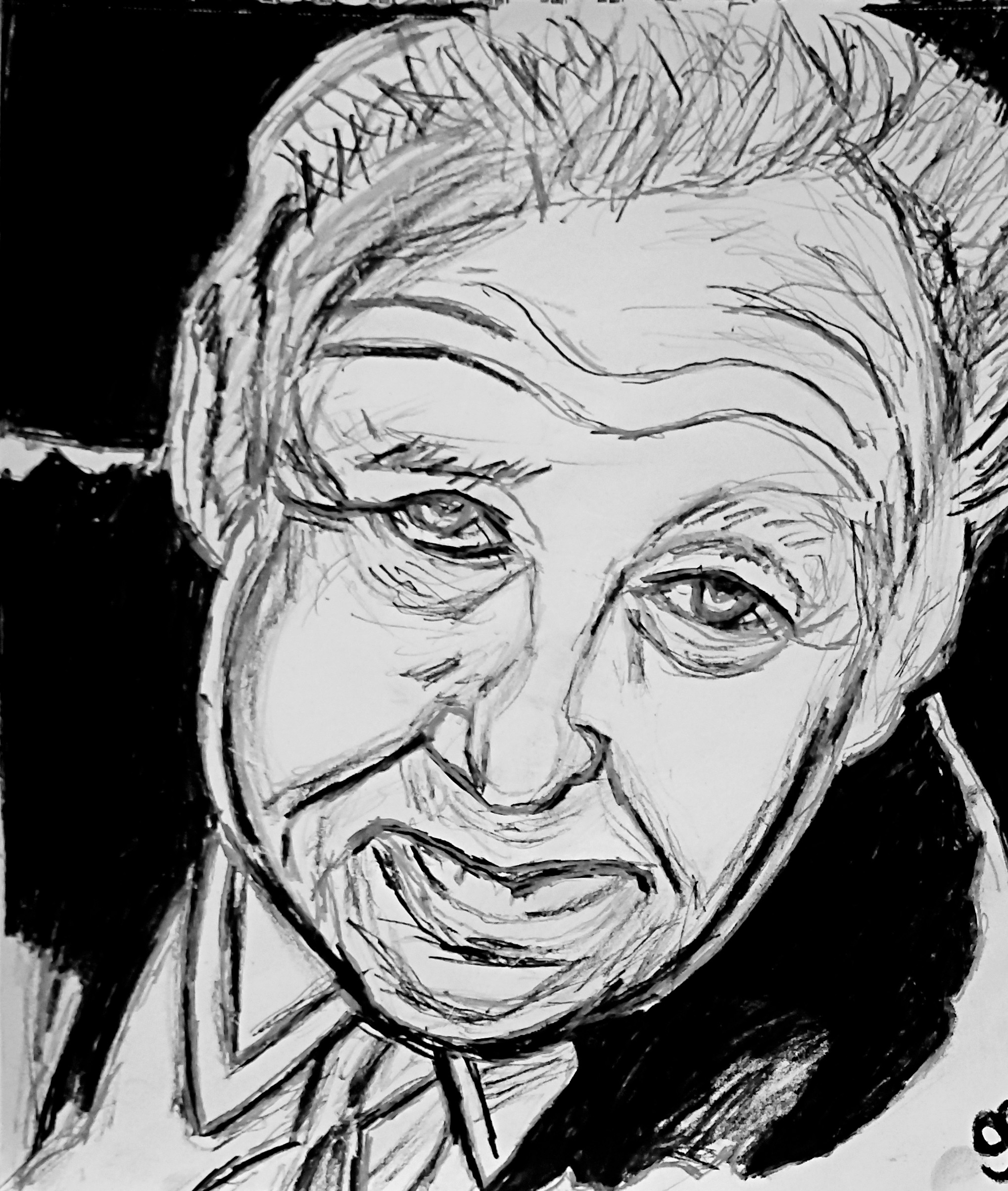 This is an original 9 by 11 black and white charcoal of famous Actor Archie Bunker done from gg