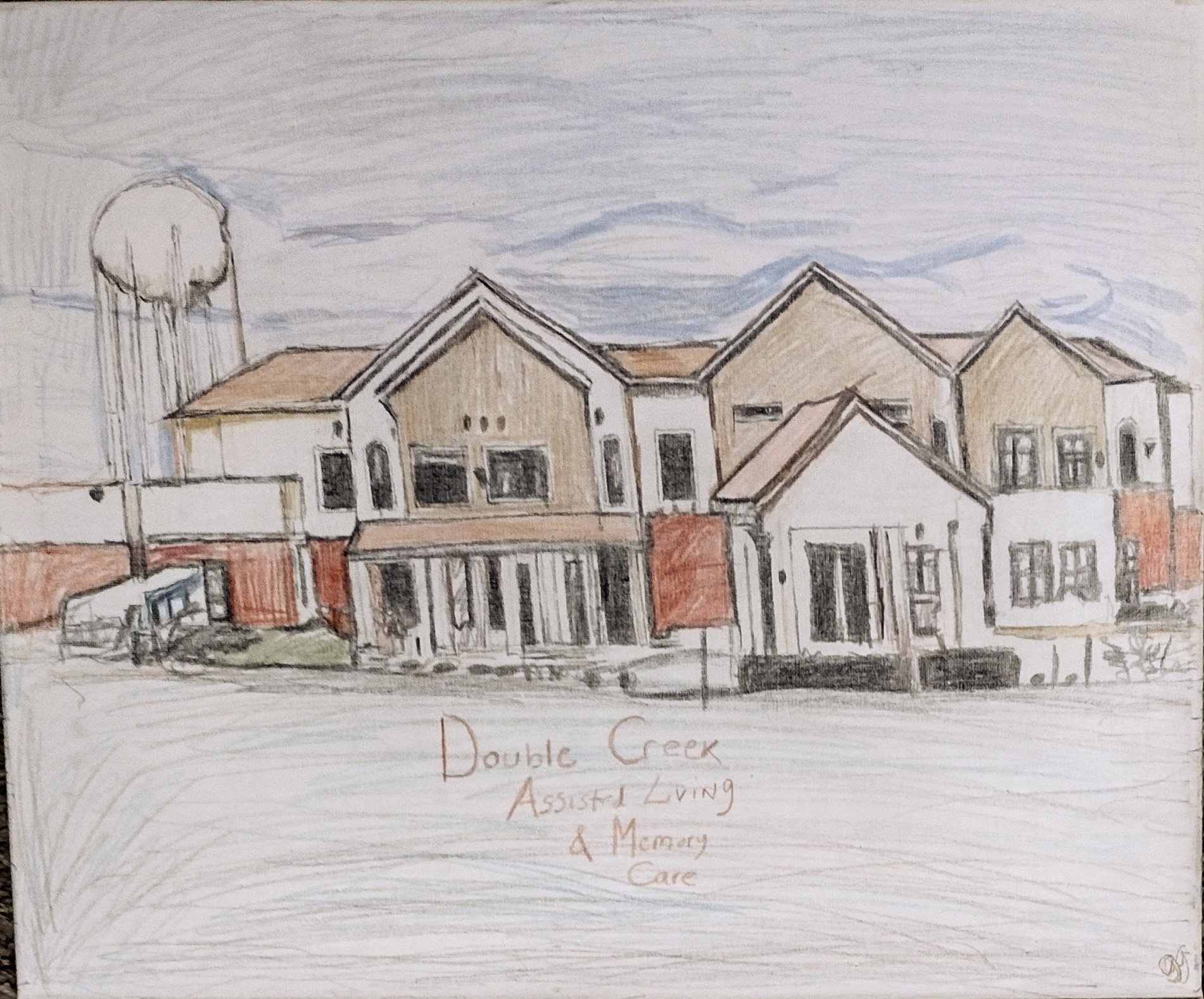 This is an original 16 by 20 canvas colored pencil of Double Creek Assisted Living done from gg