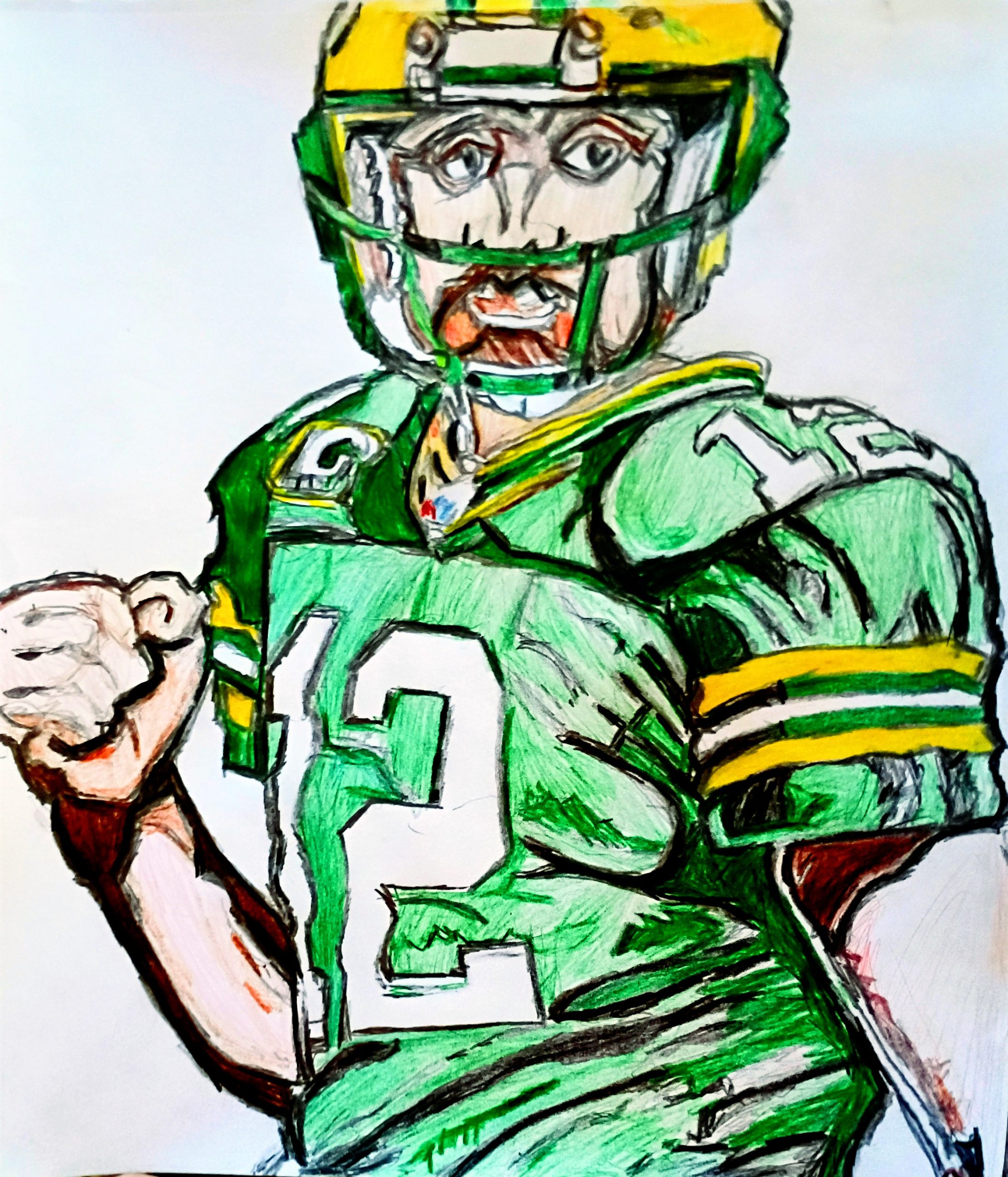 This is an original 9 by 11 colored pencil of recent famous Green Bay Quarterback Aaron Rodgers done from gg