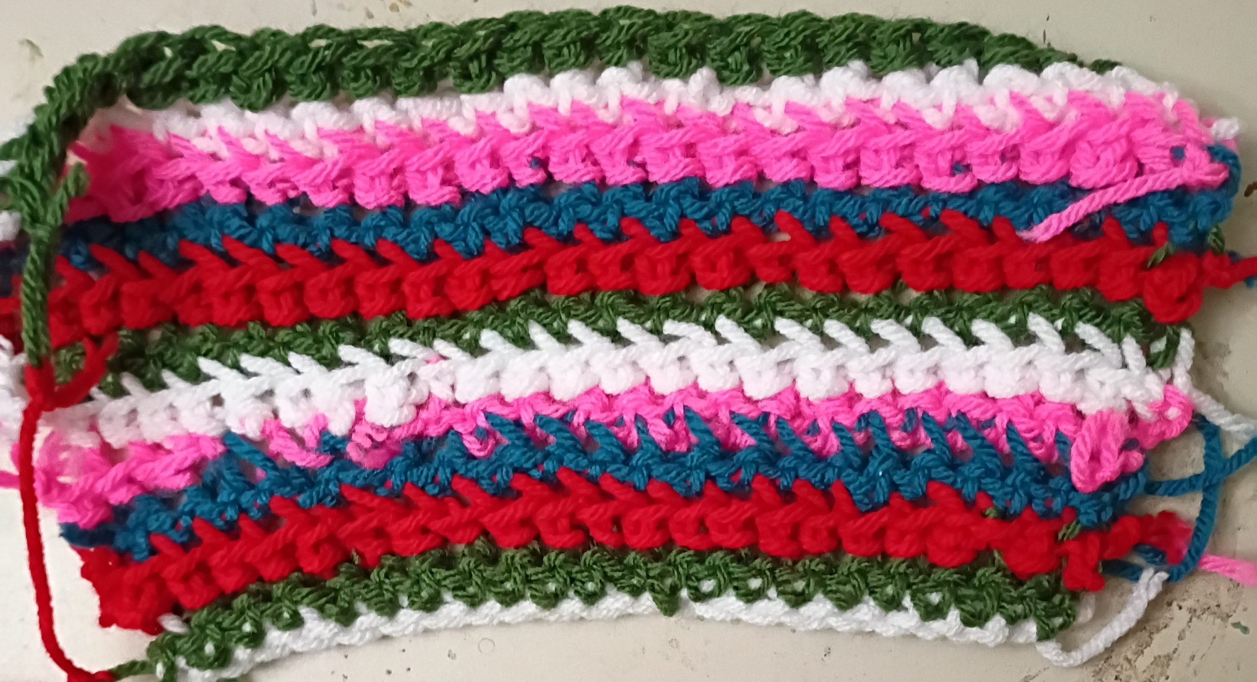 This is an original regular sized crocheted Winter Holiday Christmas New Year pattern COVID/FLU & RSV Safety Mask done from gg