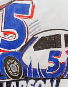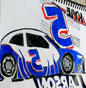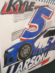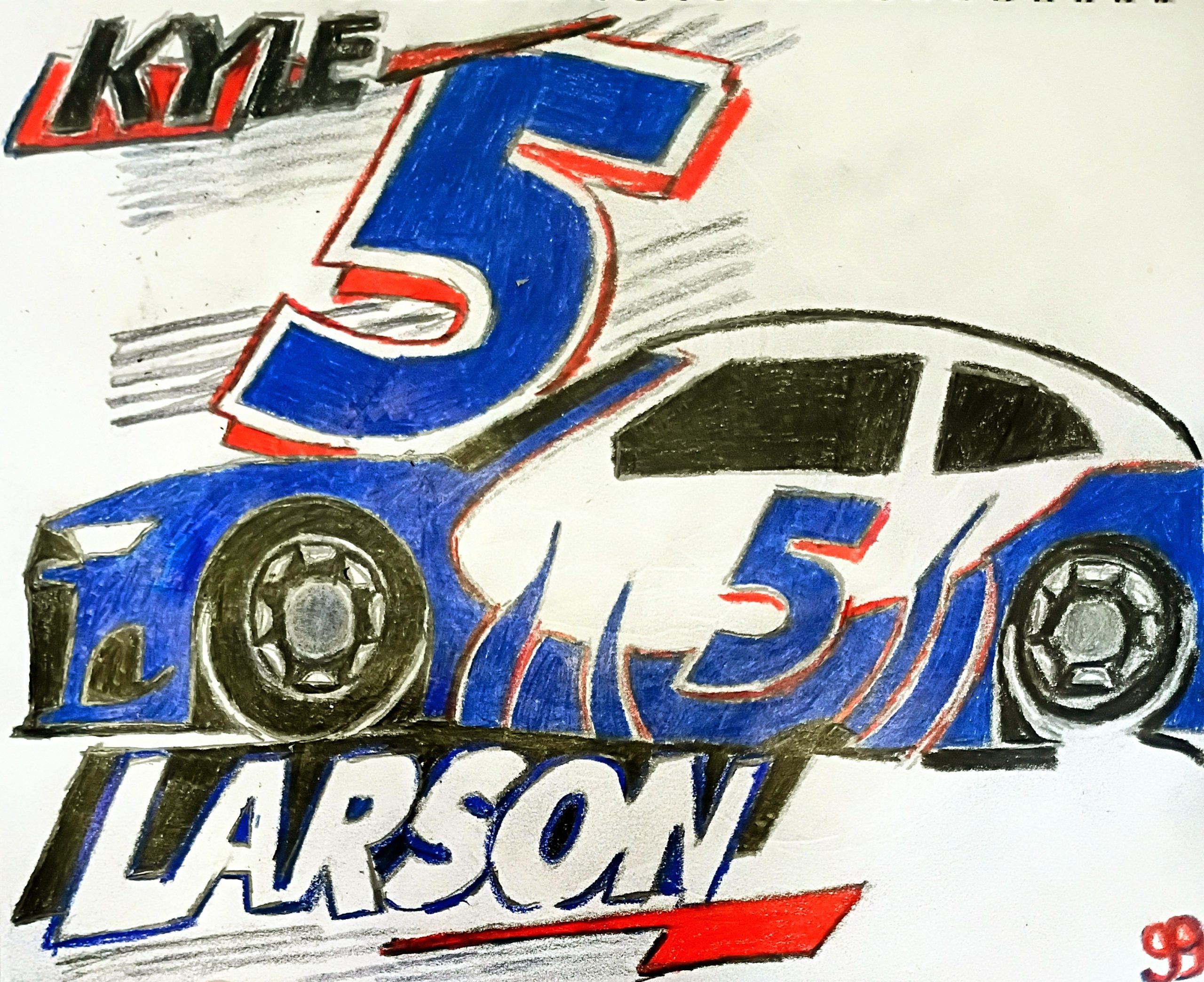 Original Kyle Larson Blue Race Car GG – 8.5″ x 10″ Colored Pencil
