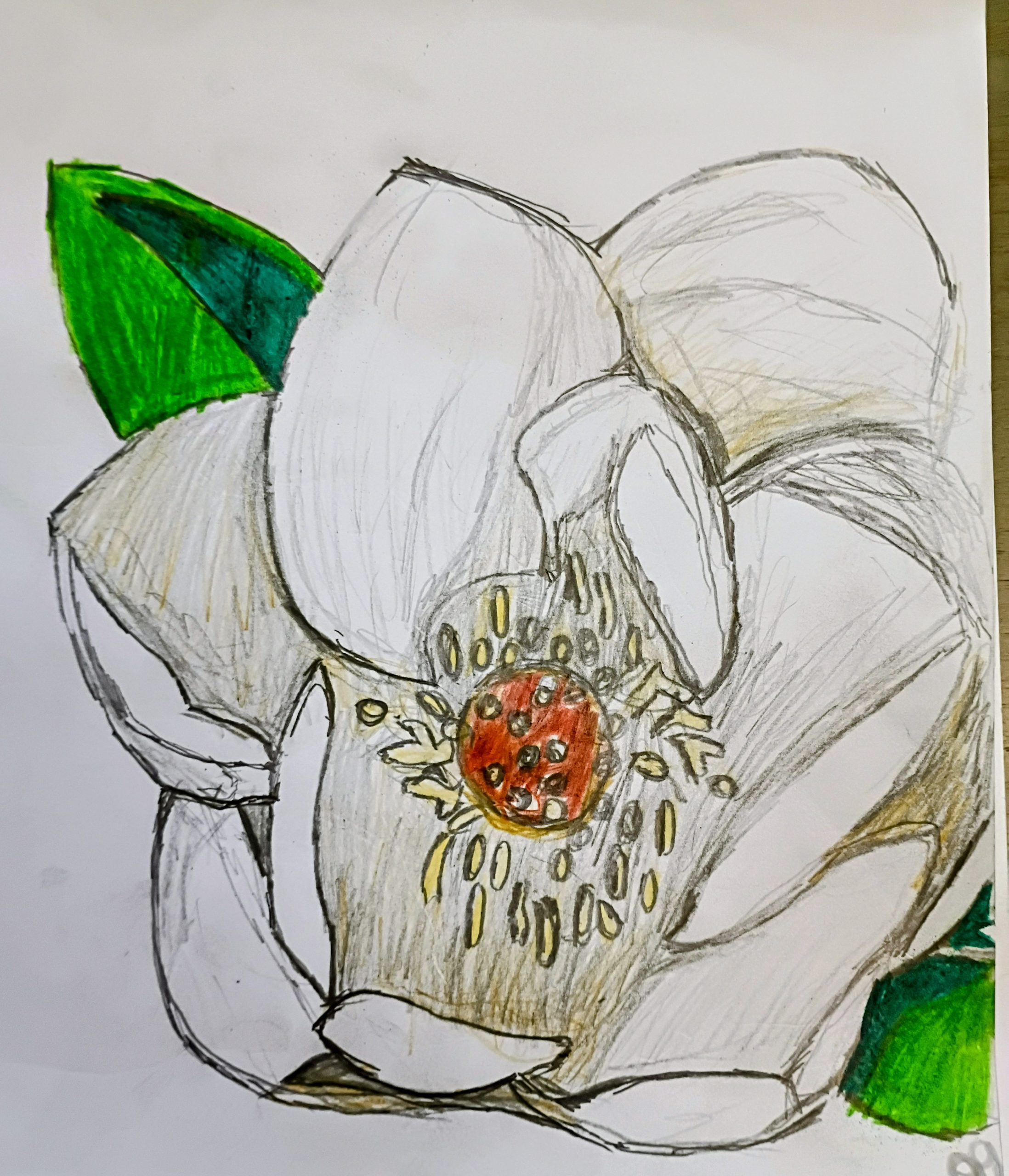 This is an original 9 by 11 colored pencil of a special Mississippi Magnolia done from gg