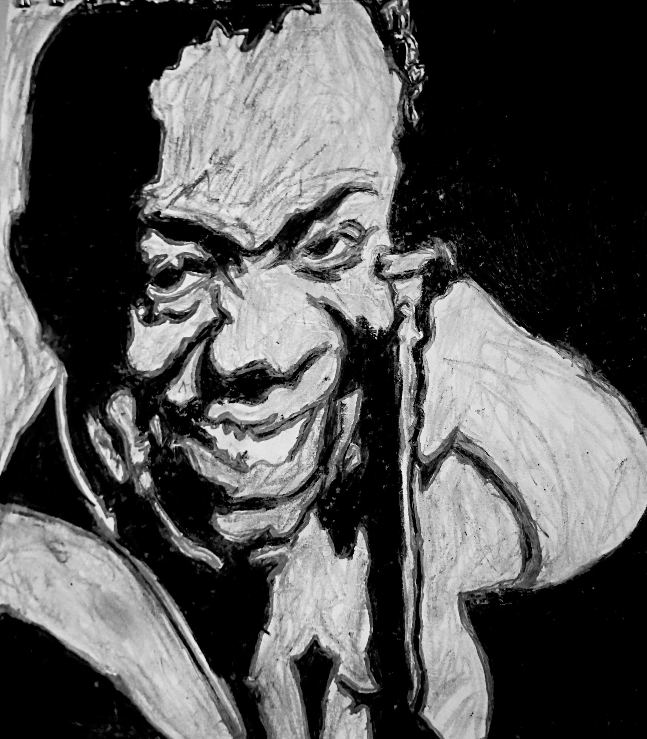 This is an original 9 by 11 black and white charcoal crayon of famous New Orleans Jazz Singer Louis Armstrong done from gg