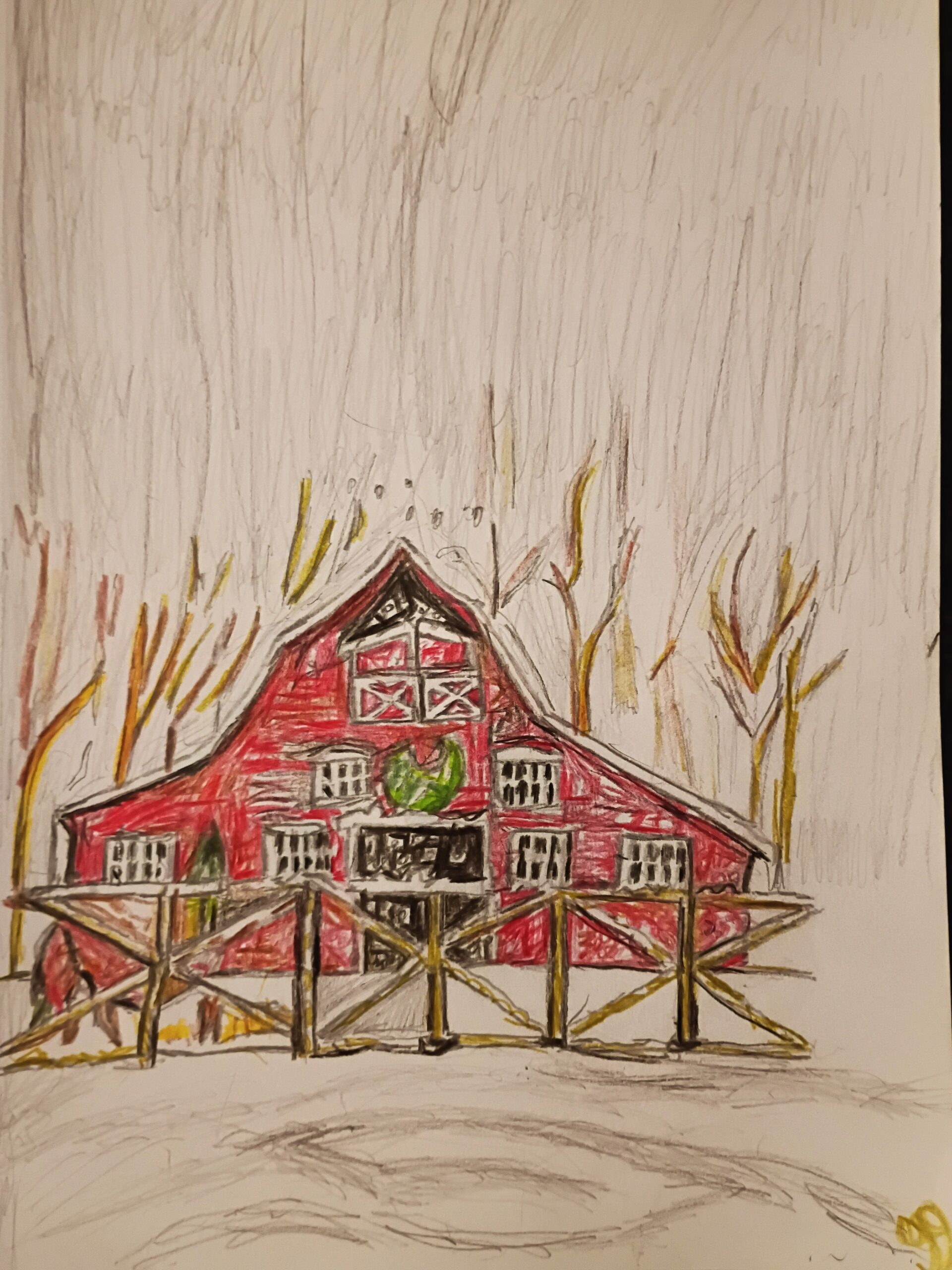 This is an original 9 by 12 old classic christmas winter holiday cabin In North Vermont during a brutal cold evening done from gg