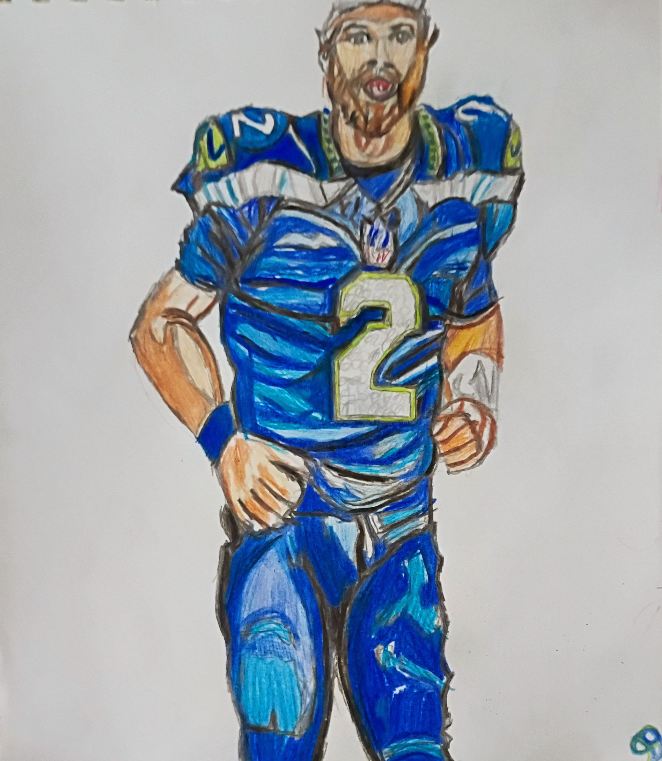 This is an original 9 by 11 colored pencil of Quarterback for Seattle Seahawks Sam Darnold done from gg