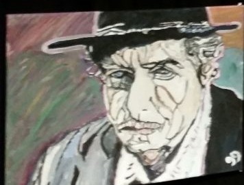 This is an original 16 by 20 canvas painting of Singer Bob Dylan done from gg
