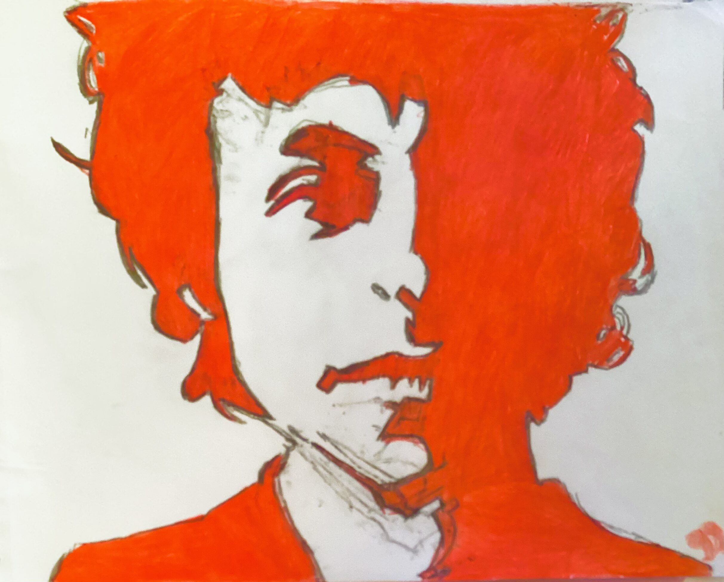This is a original 9 by 12 colored pencil of singer Bob Dylan in Autumn orange done from gg