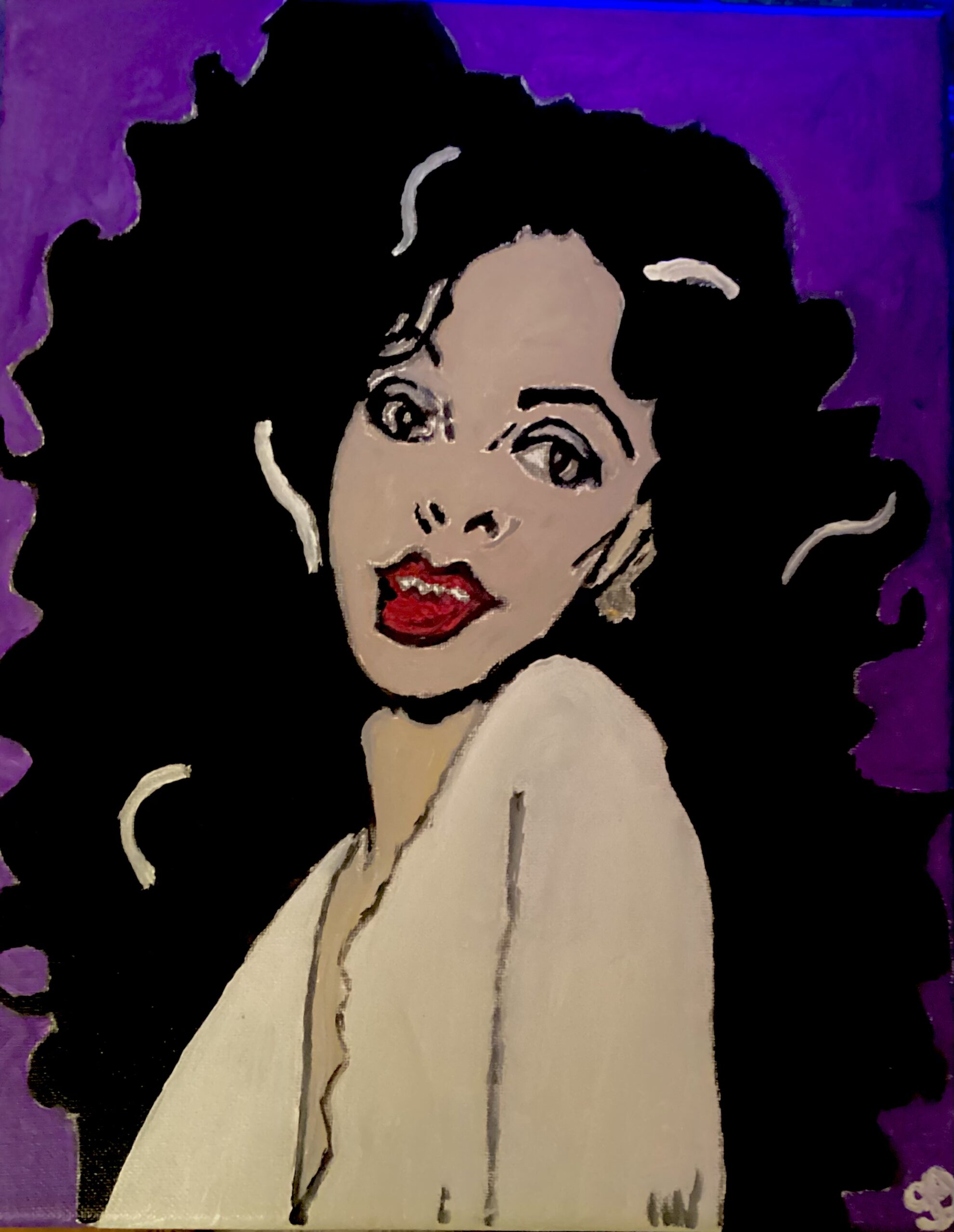 This is a original 11 by 14 canvas painting of singer Donna Summer In Deep Purple in Live Spirit done from gg