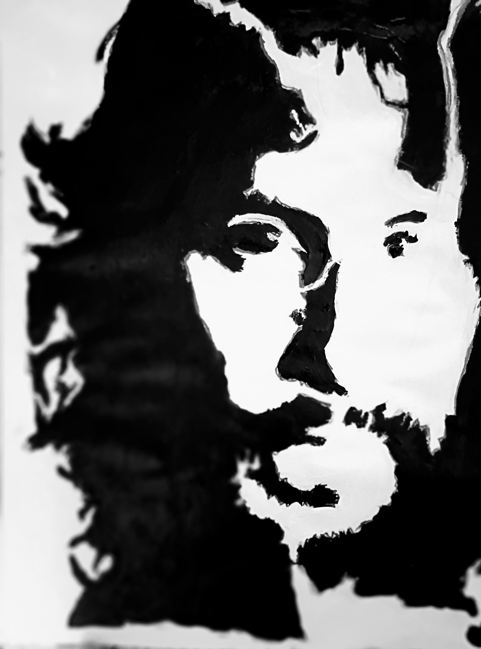 This is a original 9 by 12 black and white painting of singer songwriter Cat Stevens done from gg