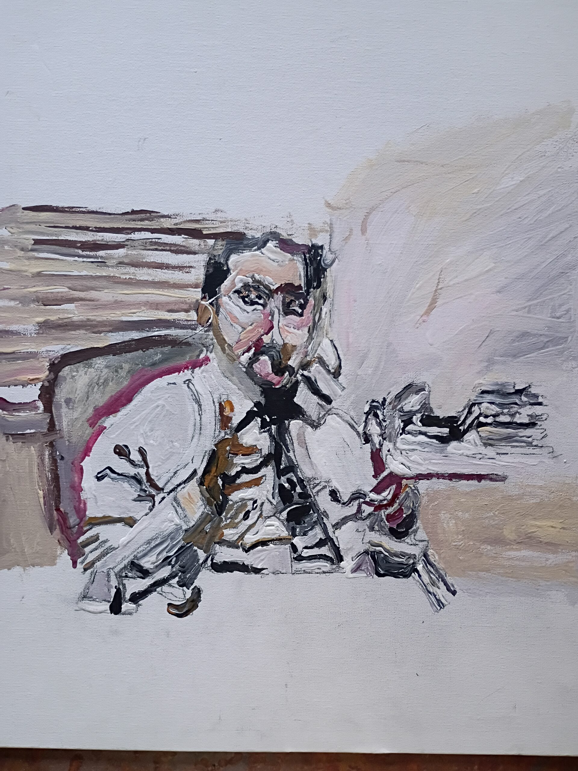 This is an original 16 by 20 canvas painting of Steve Carell from show the Office done from gg