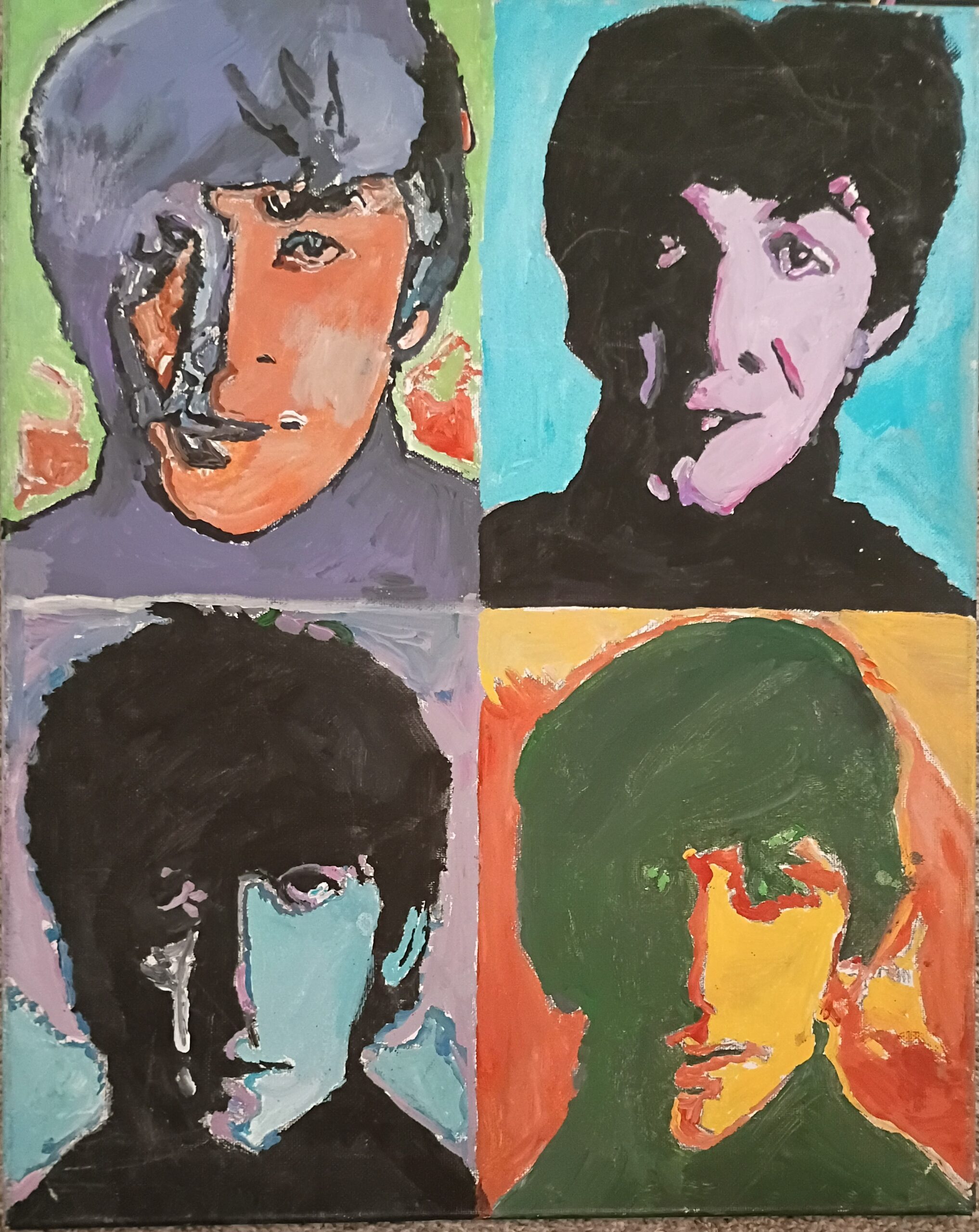 This is a original 16 by 20 canvas painting of famous The Beatles oldies times 2 done from gg