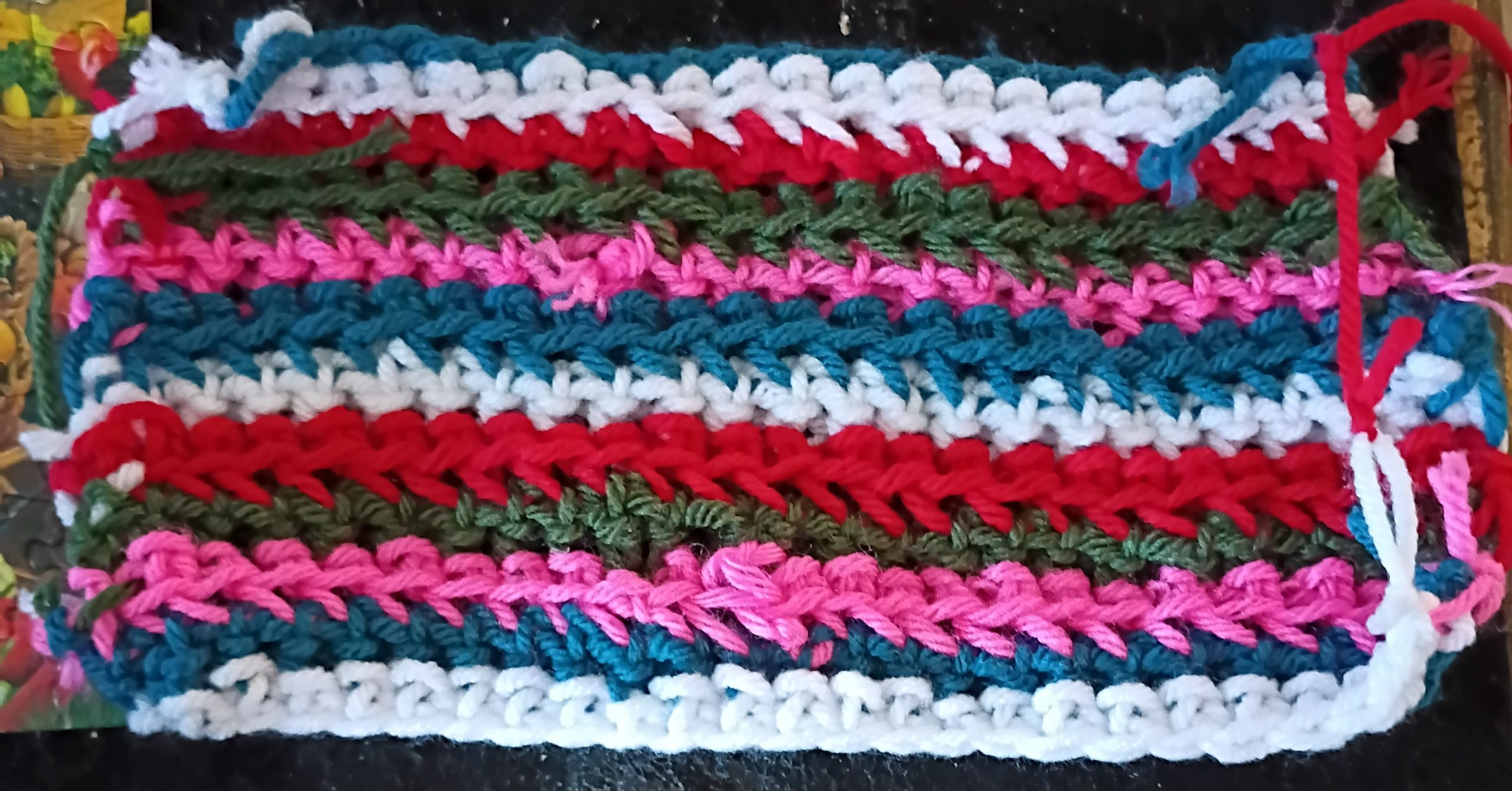 This is an original regular sized crocheted Winter Holiday Christmas New Year COVID/FLU RSV Safety Mask 10 done from gg