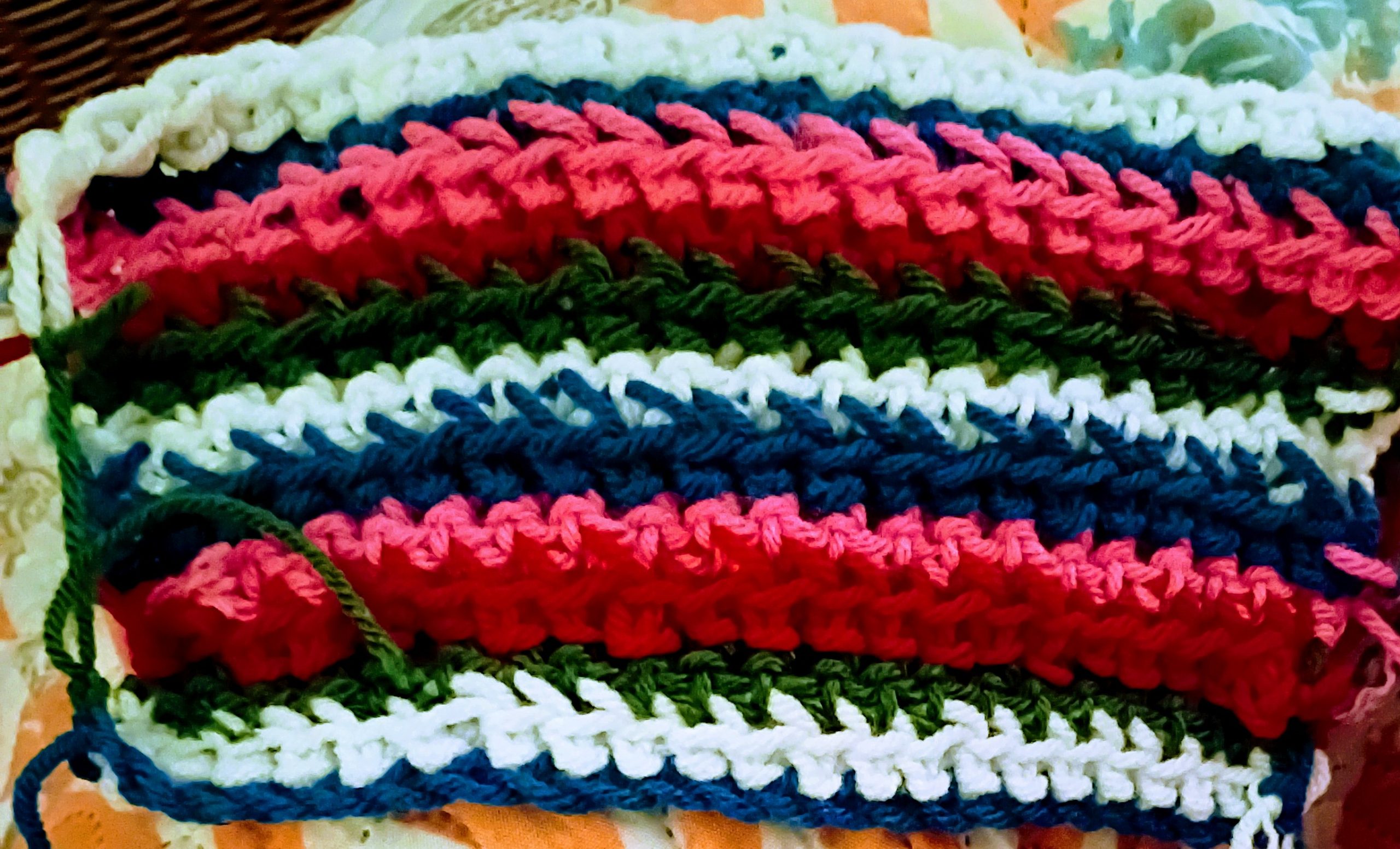 This is an original crocheted Holiday Winter Christmas New Year COVID/FLU Safety Mask 6 done from gg