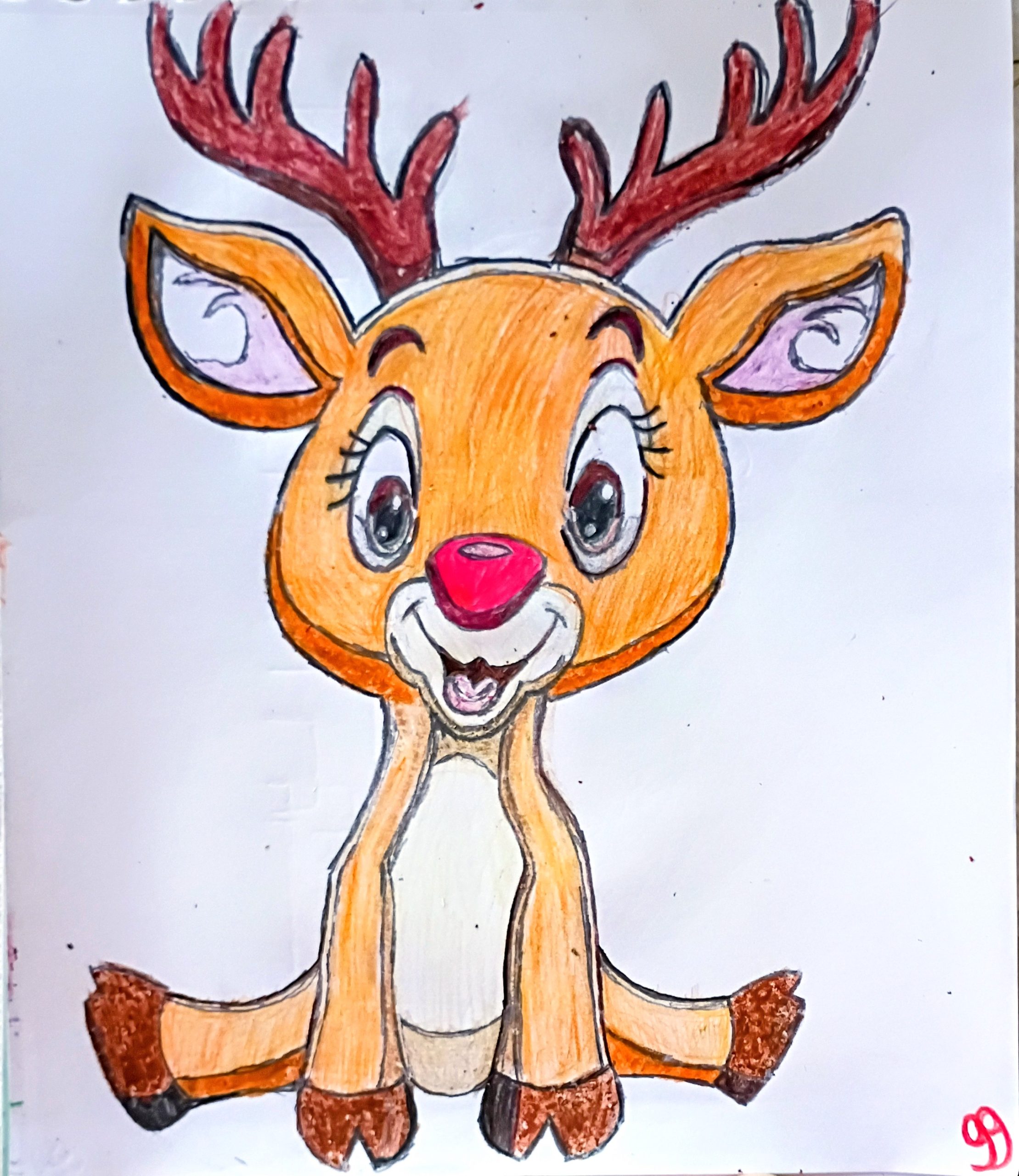This is an original 9 by 11 colored pencil and crayon of cute female holiday reindeer praising our sweet Jesus done from gg