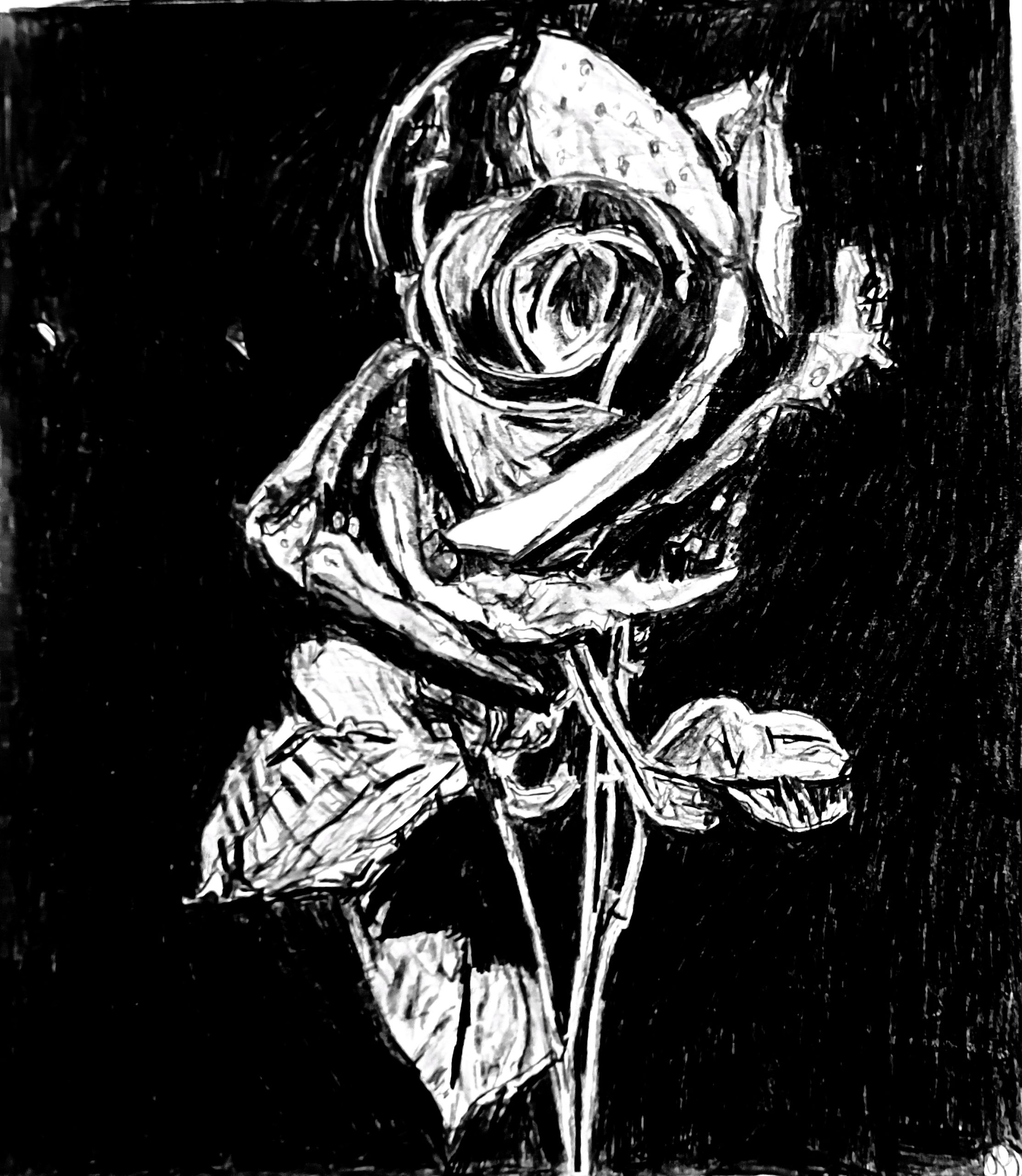 This is an original 9 by 11 black and white colored pencil of deep Winter Rose done from gg